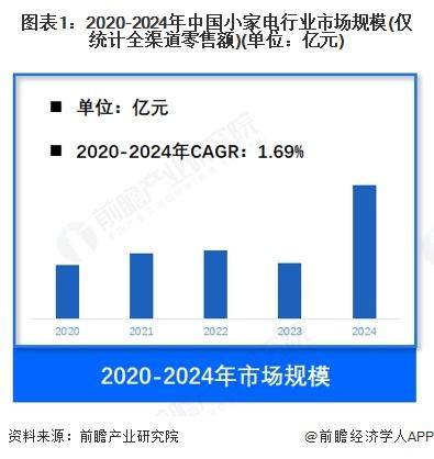 小家电是指一个相对于“大家电”、“白电”、“黑电”的俗称,同时也是相对的概念,其基本特点是体积较小,价值较小,用电量较小。我国小家电行业发展历程可以分为四个阶段,20世纪80年代中期小家电产品开始进入普通消费者家庭,初期的产品包含电风扇、电饭锅、电熨斗等;20世纪90年代新兴小家电作为时尚的象征开始走入城市居民生活;2000年后,小家电产品在人们的日常生活中扮演着越来越重要的角色;2010年后,产品质量和稳定性稳步提高,健康、节能、便捷、智能和养生等需求也刺激行业进一步发展。2024年中国小家电行业市场规模约1100亿元,近四年行业复合增速1.69%。