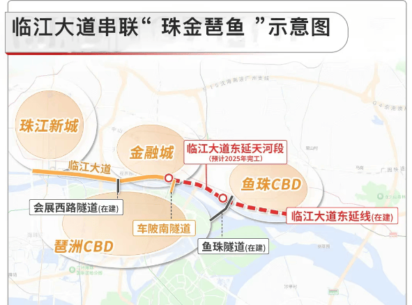 鱼珠岛的交通能级,正在经历质的飞跃。目前,地铁5号线号线已在鱼珠交汇,未来还将接入25号线(规划中),形成三线换乘枢纽。更重要的是,区域路网正加速缝合一江两岸:临江大道东延线年全线贯通,将珠江新城、金融城、琶洲、鱼珠串联成一条连续的城市滨江经济带;而全长345米的鱼珠湾隧道敞开段底板工程已于2025年底完工,计划2025年下半年通车,届时从鱼珠直达琶洲仅需数分钟。此外,新白广城际铁路将于2026年正式运营,琶洲至金融城实现“一站直达”。更令人振奋的是,海珠(琶洲)低空飞行运营中心将于2026年中启用,开通琶洲—白云机场9分钟直飞航线,并逐步延伸至深圳、珠海、澳门。多重立体交通叠加,让鱼珠岛成为线分钟生活圈”核心节点。